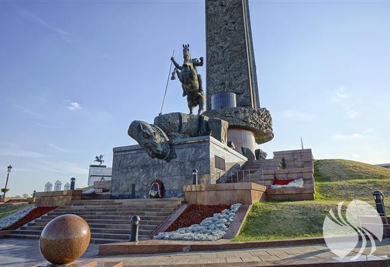 纪念碑上还刻有在此次战争中被战火波及的城市,碑体下部是俄罗斯勇士格奥尔基持长矛英勇刺杀毒蛇的雕像。