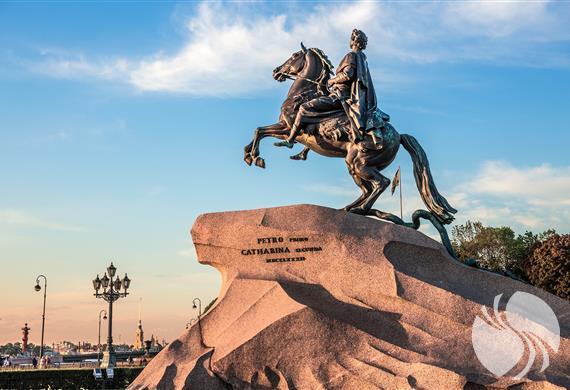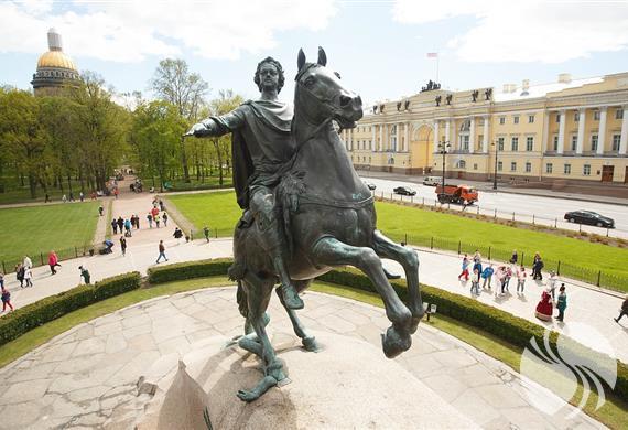 彼得大帝青铜骑士像位十二月党人广场的中央,也叫彼得大帝纪念碑。雕像高达5米,重20吨。普希金在自己的一篇叙事诗中将这座纪念碑称为“青铜骑士”,从此,“青铜骑士”就成了彼得大帝纪念碑的代名词。