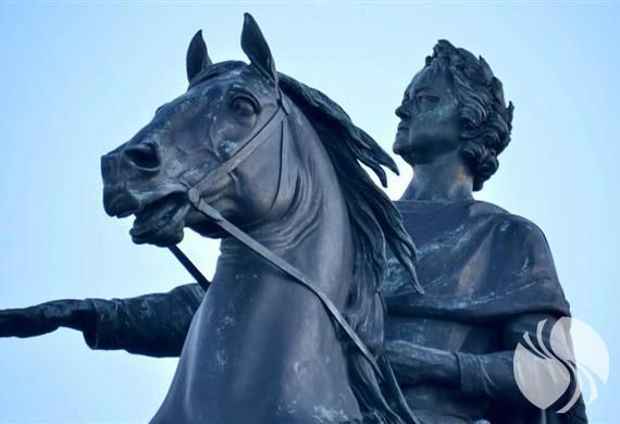现在大家看到的彼得大帝所骑的马代表俄罗斯,它双脚腾空,好像要冲破一切阻力勇往直前,在马掌下有一个踏死的大蛇,它代表了一切阻止彼得大帝改革维新的守旧派,正如雕塑展示的一样,彼得大帝冲破了重重阻力,在这片沼泽地建起了这座美丽的城市圣彼得堡,并建都于此,把落后、封建、贫穷的俄罗斯,带向了海洋与繁荣。