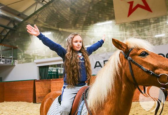 室内竞技场由两层组成,并在二楼设有VIP区,总面积为944平方米,一次最多可容纳300名观众。在这里可以骑马、观看著名马术剧院“特技演员”的表演(该剧院被公认为俄罗斯马戏团艺术的明珠之一)。
