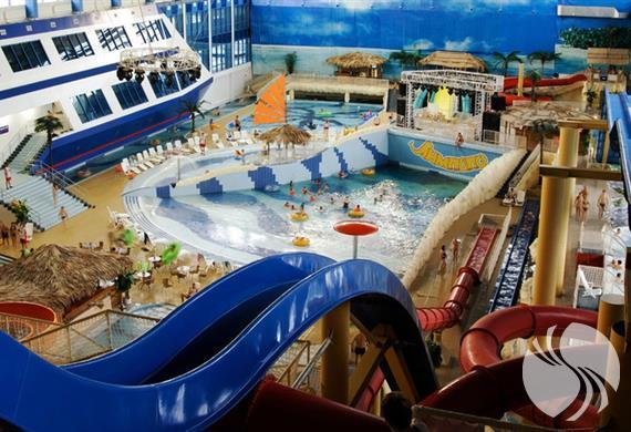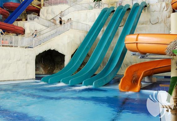 对于极限爱好者来说,水上乐园有很多景点可供选择。最极端的过山车之一是自由落体。它的高度超过16米,下降主要部分的角度几乎为60度。滑梯起源于水上综合建筑的天花板,并以每秒14米的速度将一个人带离水流。 缓慢的河流“林波波”(Limpopo)带有石窟,是游客最喜欢的景点之一,它沿着水上公园的整个周边延伸。您可以缓慢地沿着它航行,并在照顾了下一张幻灯片之后,在它旁边出去骑行。这个景点将使您放松身心,同时成为有趣的冒险。 水疗中心是游客中水上乐园最受欢迎的区域之一,其中包括大量服务。该综合大楼总共设有7间桑拿浴室,包括著名的土耳其澡堂,芬兰桑拿浴室,俄罗斯浴,按摩浴池,热水浴缸和淋浴,以及带有冷水和高压水枪的游泳池。尽管水上乐园是室内的,但它在顶层设有一个露台,在温暖的季节,您可以在舒适的日光浴躺椅上享受日光浴并享用小吃。