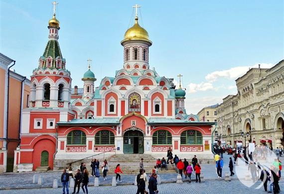 莫斯科喀山圣母大教堂是莫斯科最重要的教堂之一,也是莫斯科的一座东正教教堂,位于红场东北角,是为了纪念击退1612年波兰军队入侵而建。原先的建筑在1936年被斯大林下令拆除,目前的建筑是1993年重建,具有俄罗斯东正教典型的建筑风格。