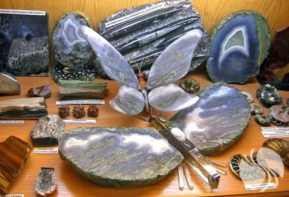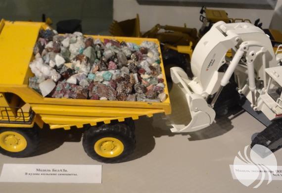 博物馆展出了俄罗斯各地,尤其是摩尔曼斯克州,科拉半岛上,希比内山脉中发现的各种不同的矿石和宝石,以及矿石开采基地的微缩景观。其中,博物馆展览中心的钟楼也是基洛夫斯克市的地标建筑。
