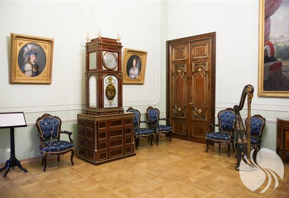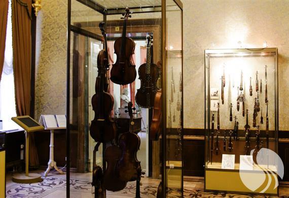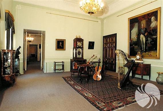 2楼的各个房间也得以修复并重现了当年的情形。这里的乐器都是很随意地摆放着的,这种展示方式很受欢迎。一间金色客厅是用于收集各种小提琴的,金色客厅本身也很别致,分别使用了金色浮雕与吊灯进行装饰。此外,还展示着拨弦古钢琴、古钢琴等,宫殿的室内装饰与优雅的古乐器相得益彰、相映成趣。
