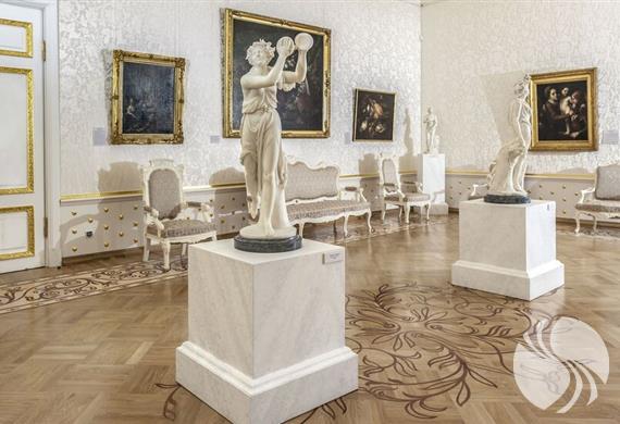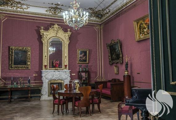 在装有别致吊灯的白色大厅里,偶尔会举办音乐会。独特的大厅于19世纪中叶出现在庄园中,其装饰甚至令宾客赞叹不已。特别订制了来自英国,瑞士和牙买加的木材作为镶木地板,墙壁上装饰有镀金元素和雪白镶边。房屋自负的风格被称为“第二巴洛克式”,部分内部是在革命后保留下来的。客厅的修复仅在2015年才正式完成。