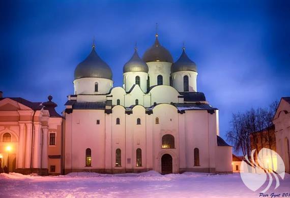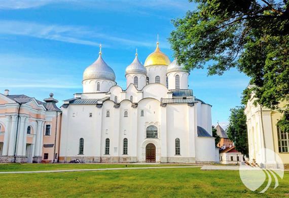 圣索菲亚教堂1045年至1050年建造的圣索非亚大教堂是俄罗斯保存最好的11世纪教堂,也是俄罗斯境内现存最古老的建筑。教堂共有6个穹顶,中间一个最高,为金色,其他5个穹顶则为银色,据说这是诺夫哥罗德教堂的一大特色。