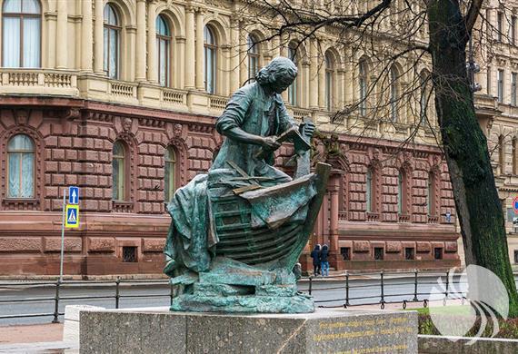 沙皇彼得一世木匠纪念碑,这座圣彼得堡地标的历史始于1907年,当时尼古拉斯二世皇帝在巴黎的一次展览中看到了两个彼得纪念碑的石膏模型:“彼得一世在赞丹学习船舶技能”(“沙皇木匠”)和“彼得一世在拉赫塔附近拯救了渔民”。 ... 两者都是由利奥波德·伯恩斯坦(Leopold Bernshtam)创作的。这些雕塑是由大师委托创作的,将在周年纪念日(波尔塔瓦战役200周年)中使用青铜制成。