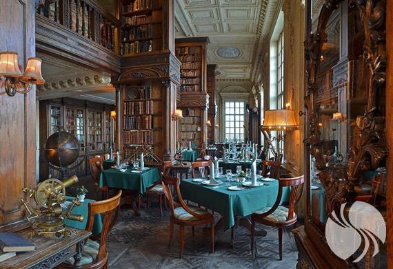 餐厅的内部装饰显得非常多样化:望远镜、显微镜、地球仪……重现了19世纪俄罗斯贵族的书房或办公室的场景。二层的“藏书馆”令人惊叹,大大的复古式书架,摆满了各式各样的书籍,训练有素的服务生们在书架和餐桌间穿行,在这里用餐,一不留神,就会有“回到”19世纪。