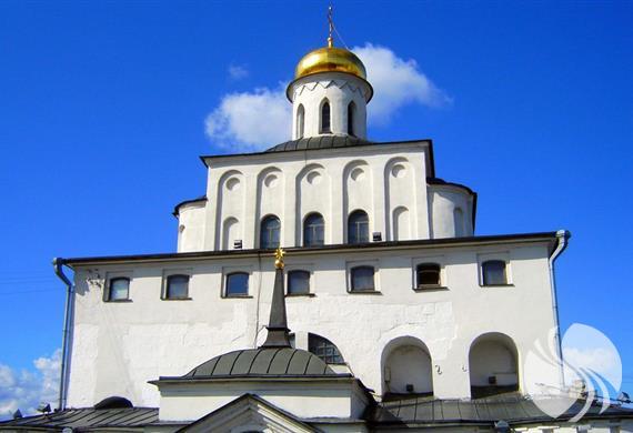 门的内里是橡木,但外表包铜再镀金而成,所以称之为“金门”,是仿造基辅的金门而建的。在金门上方的教堂中已建立了军事历史博物馆,那里陈列着俄罗斯不同时期的武器和军事装备,历史文献和资料,讲述了俄罗斯杰出的军事领导人和其他展览品,再现了弗拉基米尔遭受蒙古军队攻击时的场景。