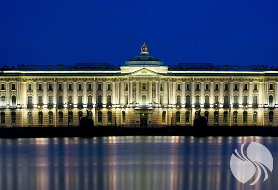 在从巴洛克到古典主义的过渡时期建造的主导大学路堤的艺术学院建筑,如今已成为联邦的建筑纪念碑,并享有涅瓦河对岸的壮丽景色。主立面在建筑平面图中几乎是正方形的,中央有一个大型圆形庭院,面向涅瓦河,以中央和侧面挑高装饰有门廊。