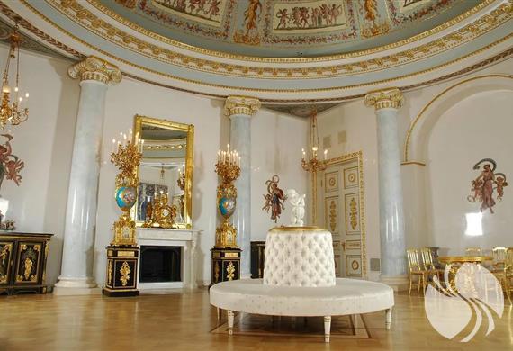 位于尤苏波夫宫二楼的大厅是礼仪性大厅,旨在与客人见面,举行各种贵族活动和舞会,招待会等等。大厅体现了波西米亚风情,美丽奢华。罗马厅,红色,绿色和蓝色客厅,宴会厅和舞厅 。