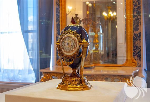 复活节的珠宝陈列在宫殿的蓝色大厅。整个博物馆博览会位于11个大厅中。