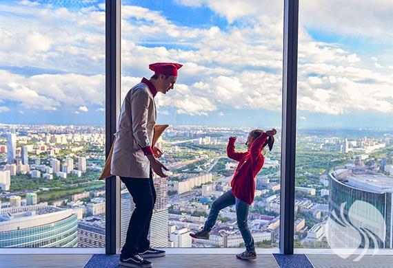 全景360度观景台又称“89层观景台”,位于莫斯科城的联邦大厦东塔的第89层,是欧洲最高的观景台。游客可通过6台高速电梯抵达观景平台,只需不到一分钟即可抵达,每台电梯最多可搭乘20人。